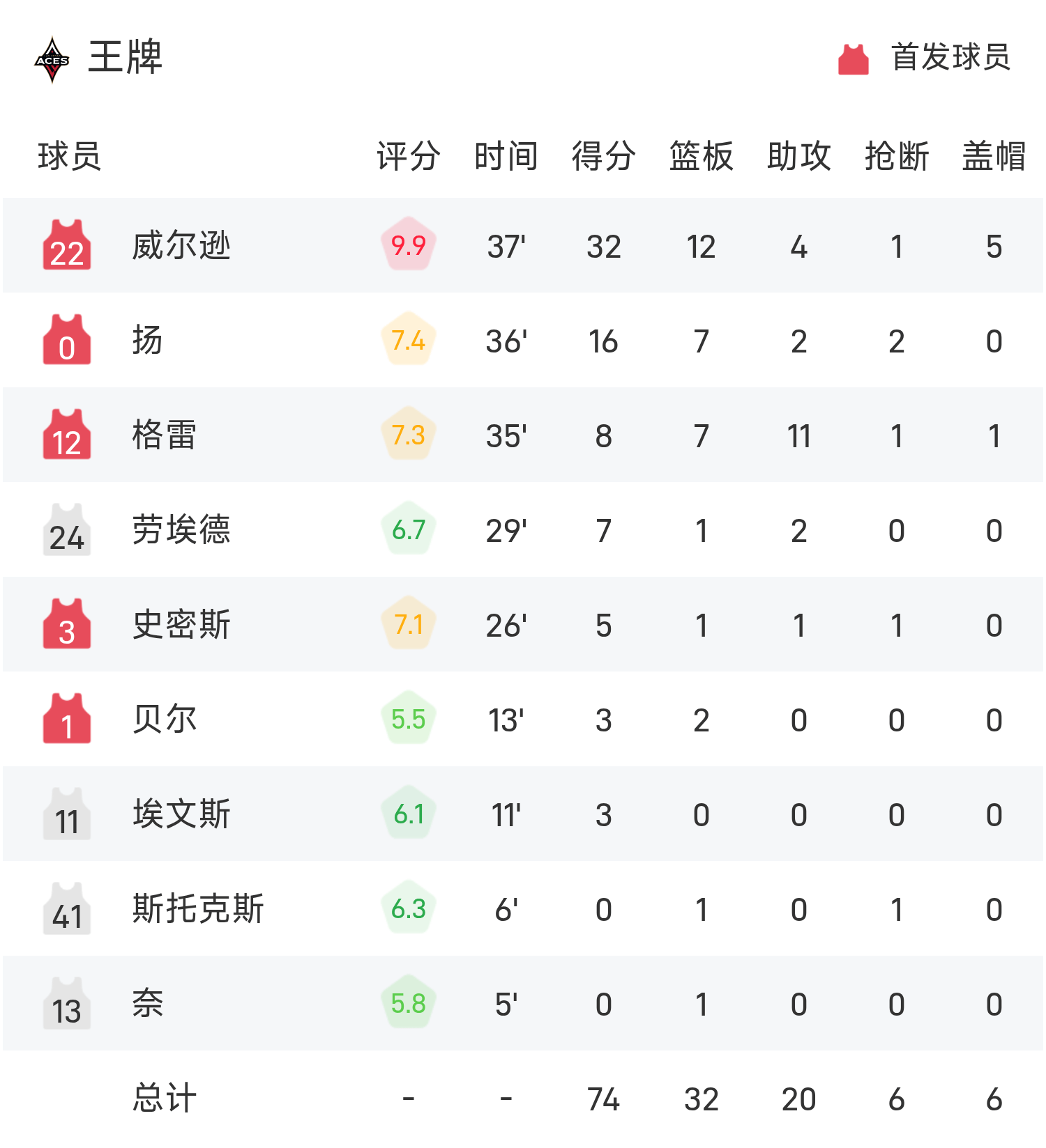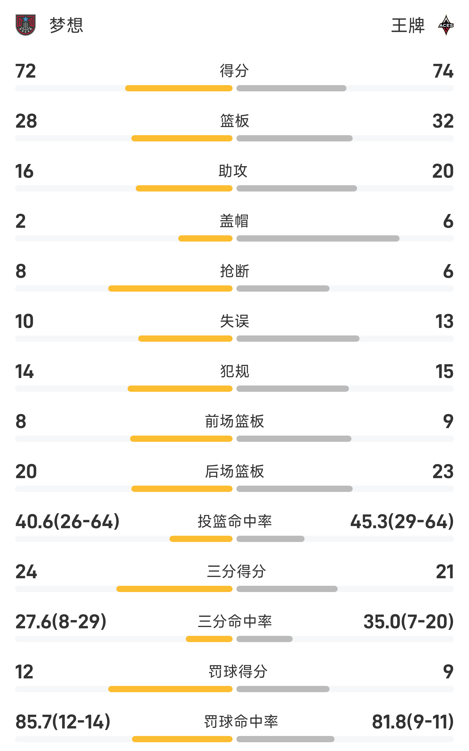 08月20日讯 25赛季WNBA 常规赛,王牌对阵梦想。双方全场战罢,王牌74-72战胜梦想。威尔逊砍下全场最高的32分12板4助,率领王牌成功取胜。