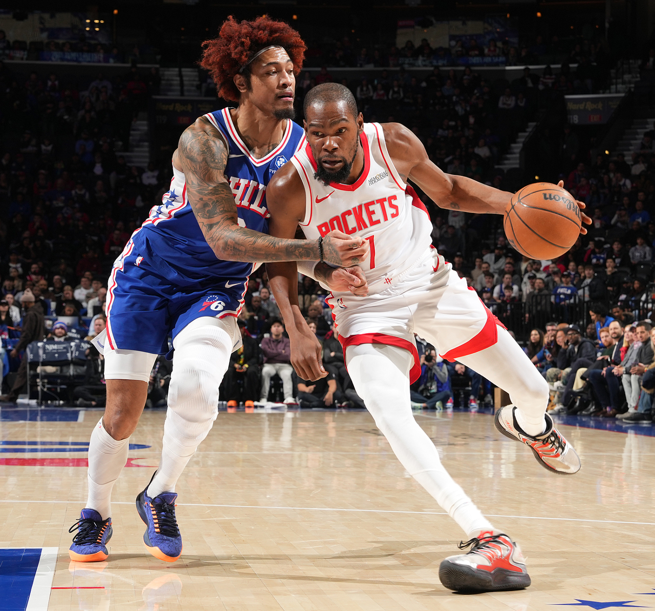 北京时间1月23日,火箭以122-128不敌费城。这场比赛凯文-杜兰特延续了上一场的完美手感,乌布雷、乔治、沃特福德轮番上阵都无法限制他,KD再度挥动他的死神镰刀帮助火箭在一度落后9分的情况下一度完成反超,但进入加时赛KD的体能下滑连续的外线三分不中还出现了一个致命的进攻犯规。