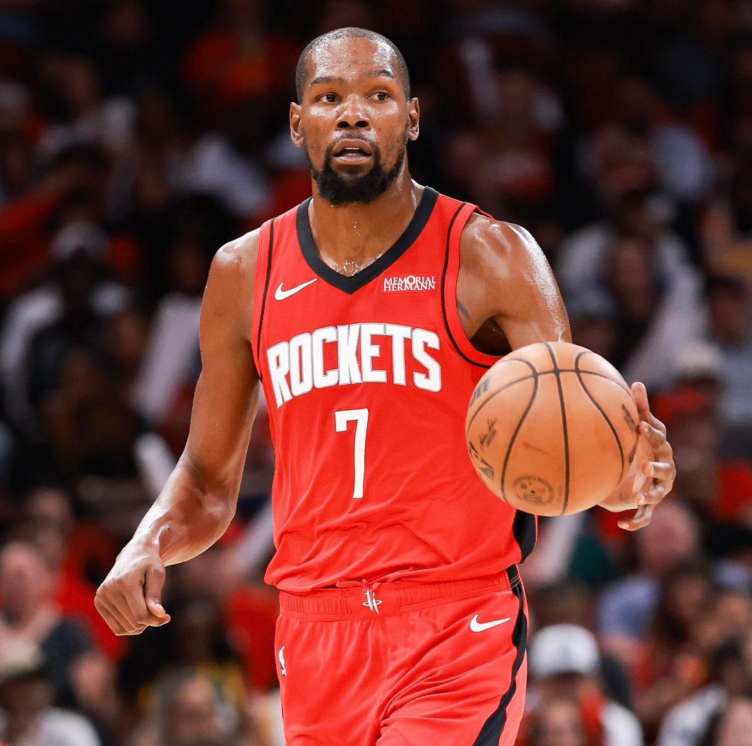 对阵费城的赛前火箭记者写道:杜兰特本赛季场均得到 25.9 分、5.4 个篮板和 4.6 次助攻,投篮命中率 51%,三分球命中率 40%,罚球命中率 89%,他限制对手命中率联盟前十,防守端非常全面,而且只因为个人原因缺席两场比赛,我给杜兰特交易到休斯顿打了A的评级,如果有这样的机会我会做10次这样的交易。
